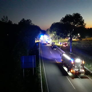 Der Einsatz für uns war nach 2h beendet, nachdem vor Ort mit den Nachlöscharbeiten und dem Auseinanderziehen des Haufens durch das THW begonnen wurde.